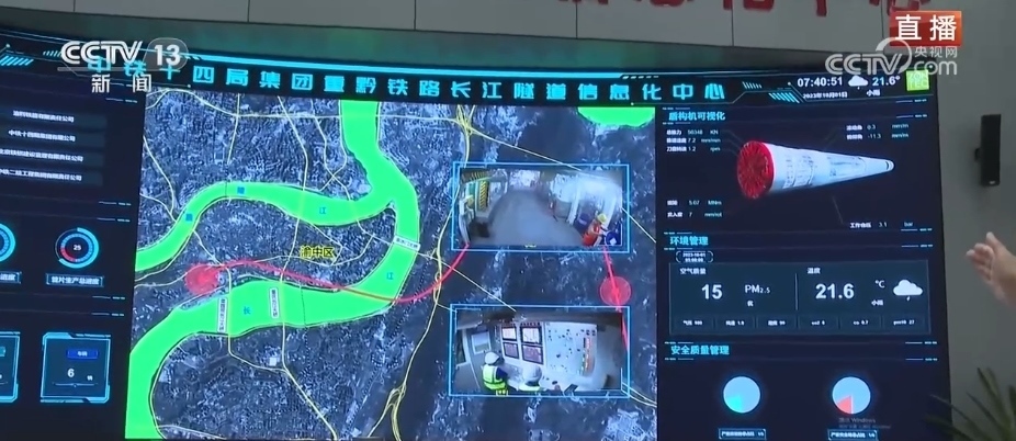 總臺(tái)記者 李洪淼:以前修建隧道需要爆破施工,工人在地下需要完成人工打眼、裝炸藥、爆破、出渣等工作,還需要進(jìn)行后續(xù)的二襯等工序才可以完成隧道建設(shè)。而如今,使用盾構(gòu)機(jī)來(lái)修建隧道,不僅可以讓隧道建設(shè)的效率大大提升,還能改善工人們的工作環(huán)境,安全性也有保障。智慧化的施工監(jiān)測(cè)平臺(tái)可以對(duì)洞內(nèi)的施工一目了然。