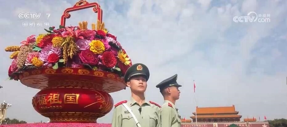 在北京,天安門(mén)廣場(chǎng)內(nèi)祝福祖國(guó)的巨型花籃吸引著眾多游客前來(lái)觀賞拍攝。武警官兵在完成好巡邏執(zhí)勤任務(wù)的同時(shí),協(xié)助工作人員進(jìn)行游客疏導(dǎo)也成為一項(xiàng)重要的工作。