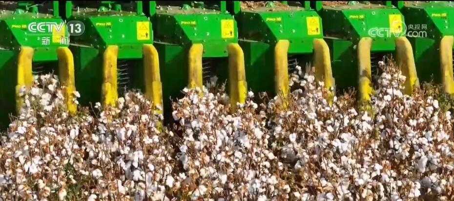 作為棉花主產(chǎn)區(qū),新疆棉花陸續(xù)進入采收季?,F(xiàn)在您看到的是位于新疆昌吉瑪納斯縣的棉田。采棉機在田里穿行,所到之處,棉花從棉稈上脫離,氣流將棉花推送到儲存棉箱,采凈率高達95%以上。這樣一臺采棉機每天可采收700余畝棉花?,敿{斯是國家級優(yōu)質(zhì)商品棉生產(chǎn)基地。從播種到采收,這里的機械化,大大提高作業(yè)速度和棉花質(zhì)量。