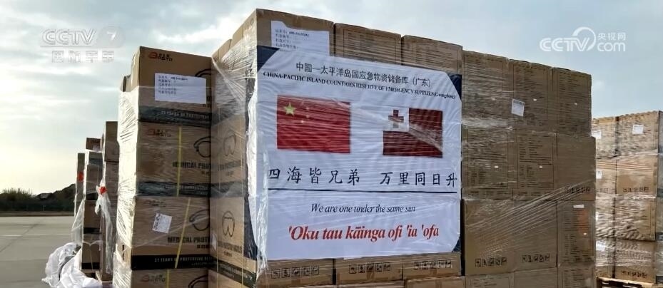 空軍航空兵某團(tuán) 楊樹(shù)帥:當(dāng)時(shí)我們集裝的貨物上都印有一面中國(guó)國(guó)旗和(一面)湯加國(guó)旗,并印了一句中國(guó)古詩(shī)“四海皆兄弟,萬(wàn)里同日升”。