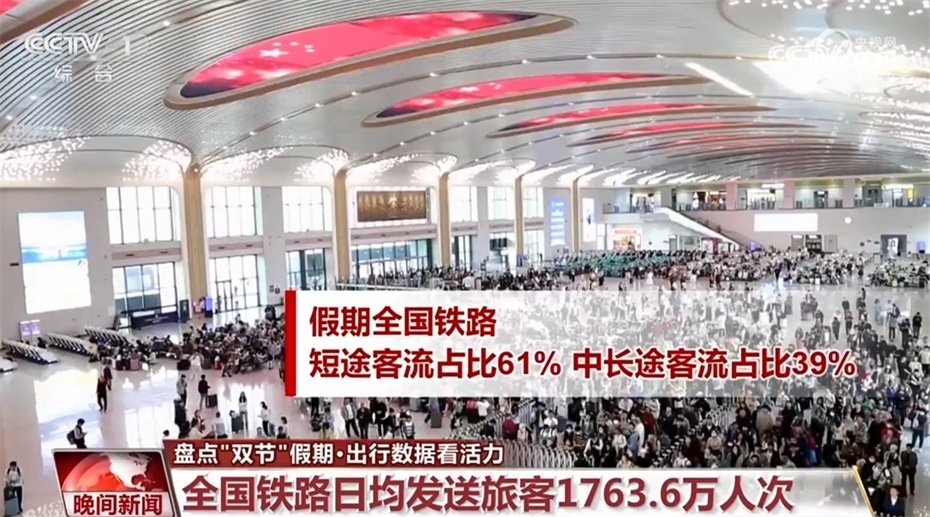 鐵路方面,今年假期,全國鐵路日均發(fā)送旅客1763.6萬人次。其中,9月29日發(fā)送旅客2009.8萬人次,創(chuàng)單日旅客發(fā)送量歷史新高。假期全國鐵路短途客流占比達到了61%,中長途客流占比為39%。