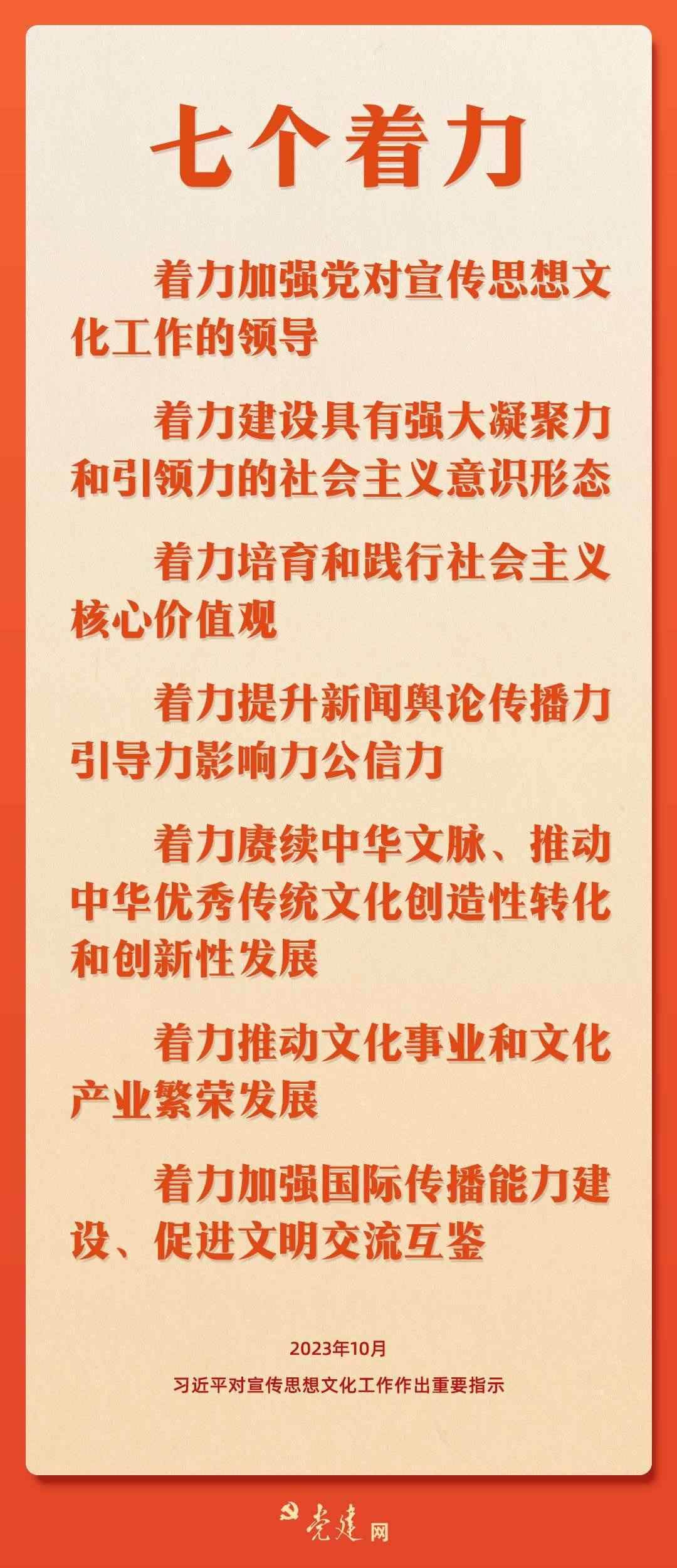 10月7日至8日,全國宣傳思想文化工作會(huì)議在京召開。會(huì)議傳達(dá)了習(xí)近平總書記對(duì)宣傳思想文化工作的重要指示,并首次提出習(xí)近平文化思想??靵硪粓D學(xué)習(xí)會(huì)議精神要點(diǎn)!