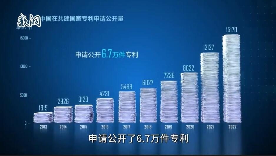 從2013年到2022年,中國在共建國家一共申請(qǐng)公開了6.7萬件專利,年平均增長(zhǎng)率達(dá)到26%。其中,有八成以上的專利申請(qǐng)來自企業(yè)。十年間,申請(qǐng)專利的企業(yè)數(shù)量由430家增至2429家,增加了4.6倍。在基礎(chǔ)設(shè)施建設(shè)、能源、貿(mào)易、投資等領(lǐng)域合作中,中國企業(yè)將其所具有的技術(shù)優(yōu)勢(shì),轉(zhuǎn)化成了共建“一帶一路”的強(qiáng)大動(dòng)能。