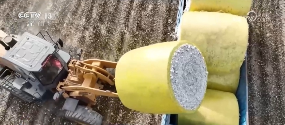 在庫(kù)爾勒市普惠鄉(xiāng)的棉花地里,采棉機(jī)快速將棉花從棉稈上脫離,采摘、壓縮、打包,全流程作業(yè)一氣呵成。