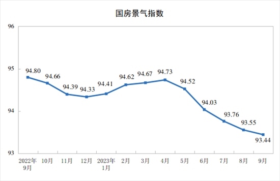 9月份,房地產(chǎn)開(kāi)發(fā)景氣指數(shù)(簡(jiǎn)稱“國(guó)房景氣指數(shù)”)為93.44。
