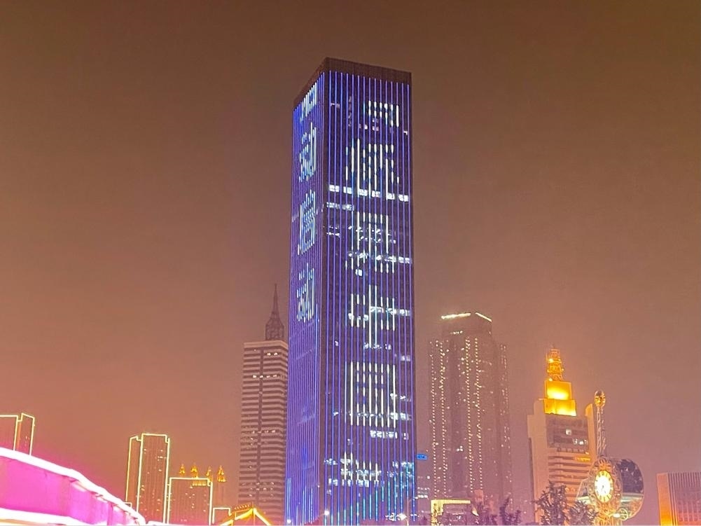 (大廈樓體亮起“橋見中國”字樣 央視網(wǎng)記者 豆瑞華攝)