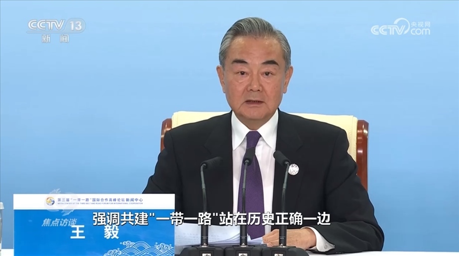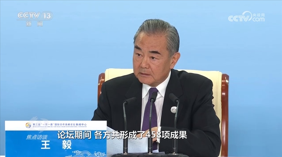 央視網(wǎng)消息(焦點(diǎn)訪談):10月18日,第三屆“一帶一路”國際合作高峰論壇在北京舉行。十年櫛風(fēng)沐雨,十年春華秋實(shí)。中國同各國堅(jiān)守初心、攜手同行,推動(dòng)“一帶一路”國際合作從無到有,蓬勃發(fā)展,取得豐碩成果。本次高峰論壇是共建“一帶一路”進(jìn)程中又一個(gè)重要里程碑。10月18日當(dāng)晚,在高峰論壇結(jié)束之際,中共中央政治局委員、外交部長王毅舉行中外記者會(huì),介紹高峰論壇重要成果。