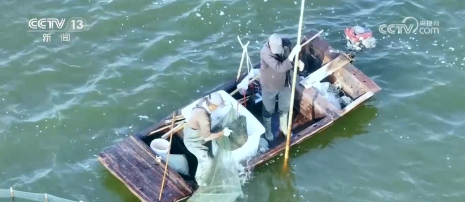 據(jù)了解,大明湖水域面積達(dá)到12.8萬畝,是江西第二大的內(nèi)陸湖泊,十分適合發(fā)展水產(chǎn)養(yǎng)殖。養(yǎng)殖的品種以青魚、草魚、鰱魚、鳙魚“四大家魚”為主。秋捕開始時(shí),漁業(yè)工人用特制的漁網(wǎng)將魚兒驅(qū)趕到特制的長(zhǎng)條通道里,再逐步收起漁網(wǎng),工人們?cè)诹硪欢俗屑?xì)挑選活魚的品種和大小,體型不達(dá)標(biāo)的魚會(huì)被挑出來,放回湖中繼續(xù)養(yǎng)。據(jù)現(xiàn)場(chǎng)工人介紹,2023年因?yàn)轱L(fēng)調(diào)雨順,大明湖迎來一個(gè)豐收年,捕獲上來的活魚一般都在4斤以上,全年總產(chǎn)量預(yù)計(jì)超過200萬公斤。