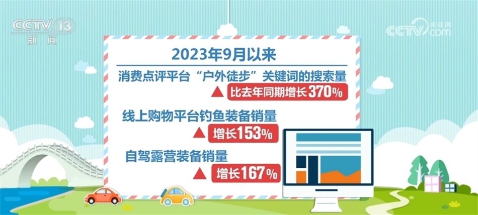 據(jù)統(tǒng)計,今年九月以來,消費點評平臺“戶外徒步”關(guān)鍵詞的搜索量比去年同期增長了370%,線上購物平臺釣魚裝備銷量增長153%,自駕露營裝備銷量增長了167%。隨著“戶外+”的新模式、新業(yè)態(tài)大量涌現(xiàn),消費產(chǎn)品也日趨多樣化,戶外運動對體育產(chǎn)業(yè)的帶動作用更加凸顯。