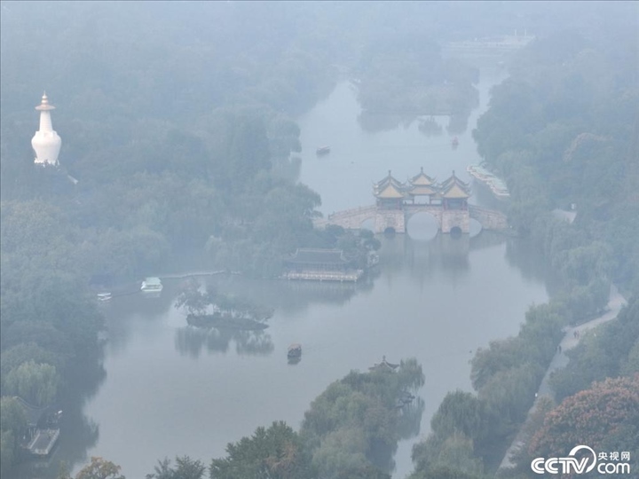2023年10月27日, 江蘇省揚州市出現(xiàn)大霧天氣,瘦西湖風(fēng)景區(qū)在霧中若隱若現(xiàn)、如夢似幻,宛若一幅水墨畫。
