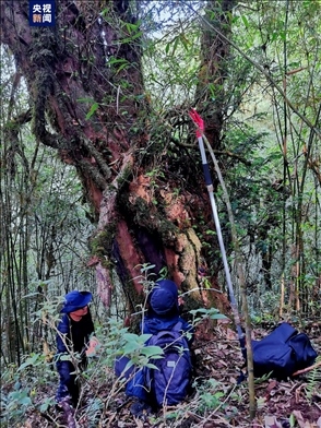 ·云南省臨滄瀾滄江省級自然保護區(qū)鳳慶片區(qū)發(fā)現(xiàn)一株野生喜馬拉雅紅豆杉,預(yù)估樹齡達上千年。