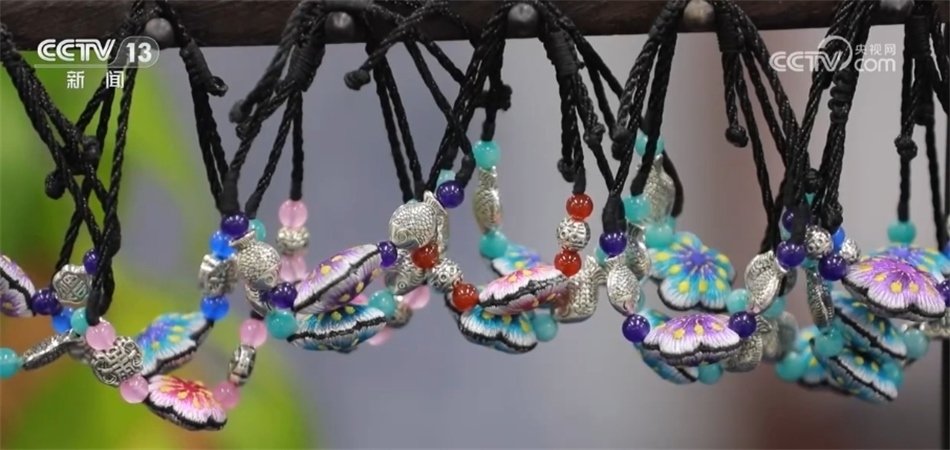 讓石順蓮她們沒想到的是,過去從未在傳統(tǒng)苗繡中出現(xiàn)過的胸針、發(fā)釵、耳墜等都能融入苗繡元素,如今這些生活飾品、文創(chuàng)產(chǎn)品已成為游客們的香餑餑。