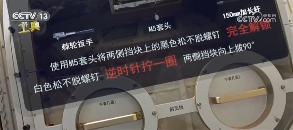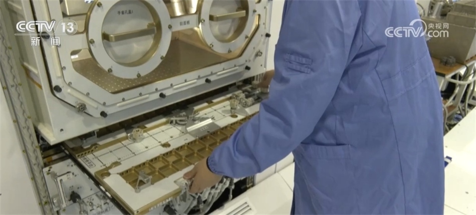 ?????? 中國科學院空間應用工程與技術中心研究員 張璐:這里面,我們主要是進行一些比如說小載荷、標準載荷的維修操作,包括有一些有密閉要求的載荷,我們可以通過更換手套進行操作。艙外有一些大型載荷有一些安裝、升級甚至拆裝的操作,我們可以通過這個移動維修平臺,把這個平臺拉開以后,它可以展開成一個大概900毫米x700毫米的一個大平板。艙外的這些大載荷可以在這個大平板上安裝固定,然后航天員在這個平板上結(jié)合內(nèi)部豐富的各種載荷的接口,來進行相應的維修操作。
