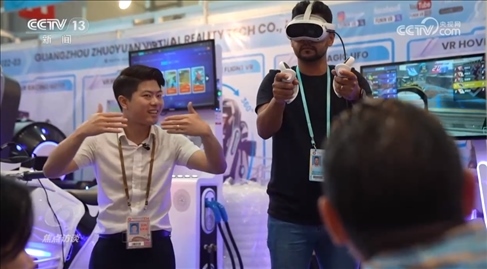 在這家企業(yè)的展位上,一款創(chuàng)新的VR平衡車以獨特設計和高交互性受到眾多采購商的青睞。等待體驗的人群排起了長隊。