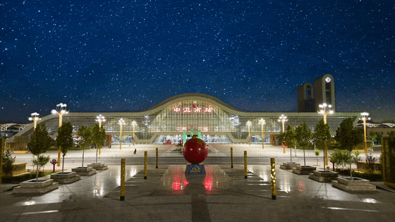 站房頂部呈沙黃色波浪形結(jié)構(gòu)