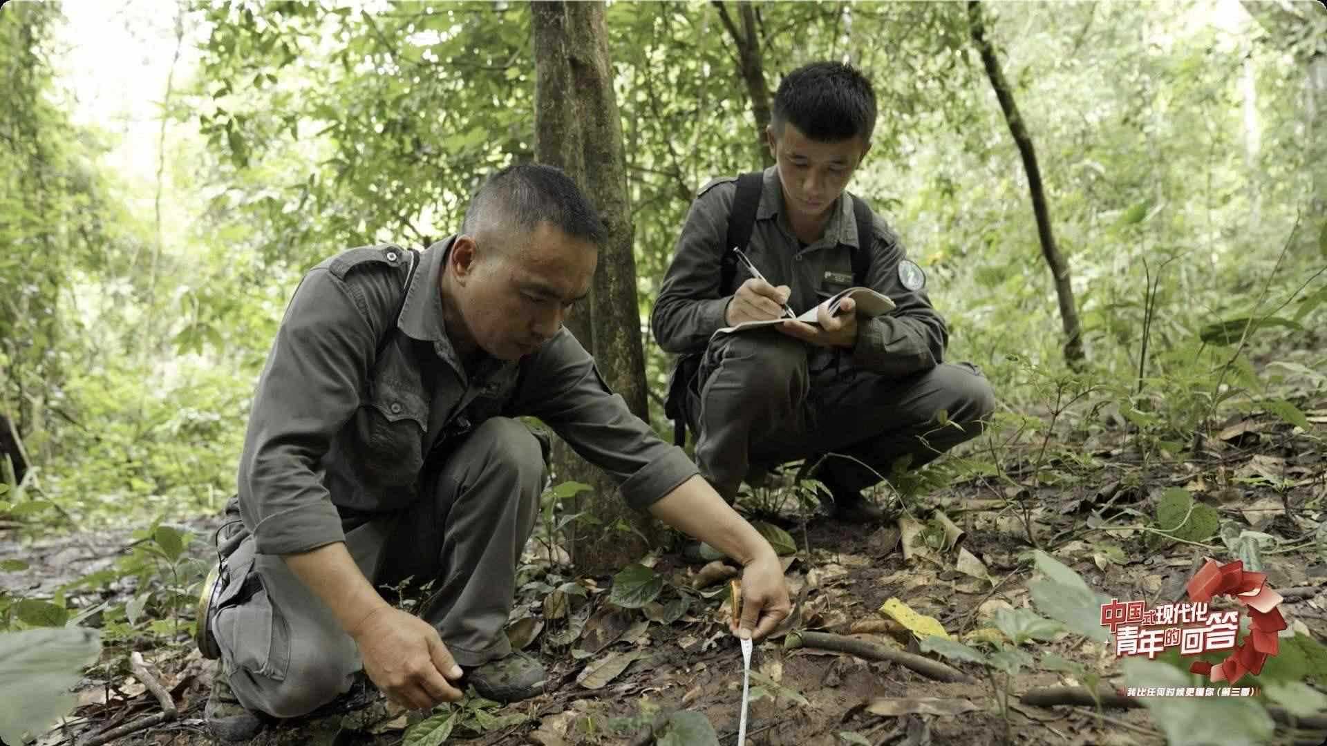 視頻中,巖溫甩在李富明帶領(lǐng)下追蹤、觀察和記錄亞洲象。這不僅是體力活,更是一項技術(shù)活。亞洲象行走時沒有太大的聲音,不過當(dāng)它們吃東西、折斷樹枝、呼喚同伴的時候會發(fā)出聲響。觀測員們靠的就是比較原始的觀測技巧,聽聲音、尋腳印、看糞便等,從而預(yù)報出沒的時間、地點(diǎn)、種群、行走路線。