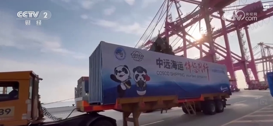 央視財(cái)經(jīng)記者 金荷淼:進(jìn)博會(huì)的吉祥物“進(jìn)寶”戴著的這條圍巾是黃藍(lán)相間的,黃色代表“絲綢之路經(jīng)濟(jì)帶”,藍(lán)色代表“21世紀(jì)海上絲綢之路”,這恰恰體現(xiàn)著進(jìn)博會(huì)與 “一帶一路”的密切聯(lián)系。今年“進(jìn)博號(hào)”中歐班列共發(fā)行3列,承運(yùn)貨值超過3.5億元人民幣,較上屆進(jìn)博會(huì)增長近三倍。浦東機(jī)場貨運(yùn)站保障參會(huì)展品物資重量超20噸,較上屆進(jìn)博會(huì)增長超五成。正是這一場場跨越萬里的接力賽,搖響了新時(shí)代國際貿(mào)易的“駝鈴”。