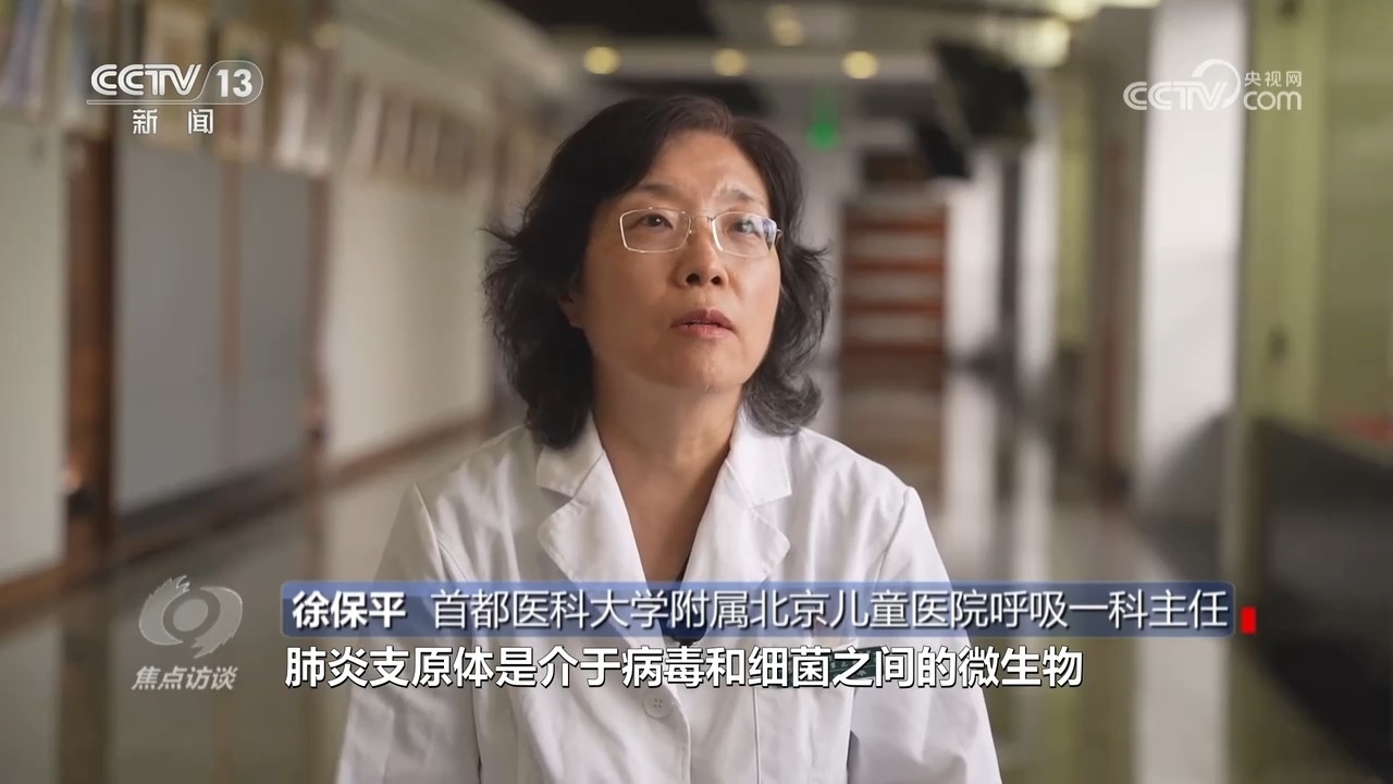 首都醫(yī)科大學(xué)附屬北京兒童醫(yī)院呼吸一科主任徐保平:“肺炎支原體是介于病毒和細(xì)菌之間的微生物,主要通過呼吸道感染,主要臨床表現(xiàn)是發(fā)熱、咳嗽,在病初的時候表現(xiàn)是劇烈的、陣發(fā)性的、刺激性的干咳。”