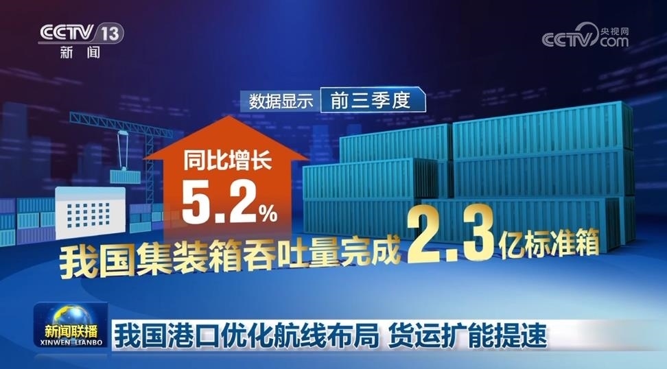 央視網(wǎng)消息(新聞聯(lián)播):今年以來(lái),我國(guó)港口緊跟市場(chǎng)需求,積極優(yōu)化航線布局,加大貨物運(yùn)輸?shù)亩嗍铰?lián)運(yùn),助力我國(guó)經(jīng)濟(jì)發(fā)展。