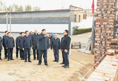 11月10日,中共中央總書記、國家主席、中央軍委主席習(xí)近平在北京、河北考察災(zāi)后恢復(fù)重建工作。這是10日下午,習(xí)近平在河北保定涿州市刁窩鎮(zhèn)萬全莊村房屋重建施工現(xiàn)場考察。新華社記者 鞠 鵬攝