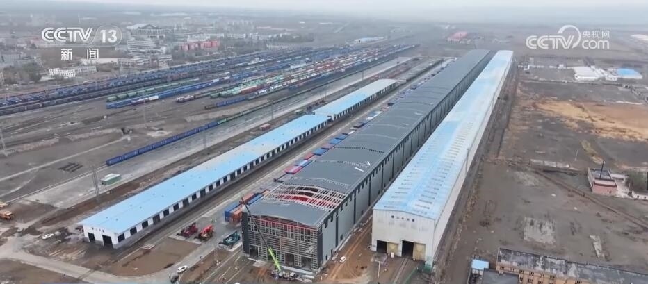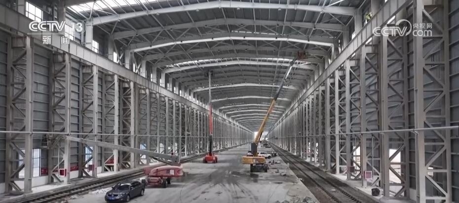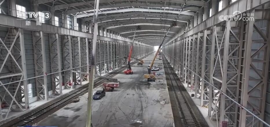 總臺(tái)記者 崔寧:在我的身后有一小一大、一舊一新兩座換裝庫(kù),它們主要是對(duì)入境的中歐班列進(jìn)行換裝。小的這座看起來也比較舊,它建于2008年,到目前為止已經(jīng)投用了整整15年。隨著“一帶一路”倡議的不斷推進(jìn),現(xiàn)在經(jīng)阿拉山口口岸出入境的中歐班列數(shù)量已經(jīng)由最初月均3.5列增加到日均17列。所以,它的存在也已經(jīng)遠(yuǎn)遠(yuǎn)不能滿足現(xiàn)在發(fā)展的需求,也正因?yàn)槿绱?,在它的旁邊又新建了一座大的換裝庫(kù),它建成投用之后將取而代之成為目前亞洲最大的室內(nèi)集裝箱換裝庫(kù)。