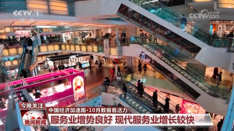 再來(lái)看服務(wù)業(yè)。服務(wù)業(yè)增勢(shì)良好,現(xiàn)代服務(wù)業(yè)增長(zhǎng)較快。10月份,服務(wù)業(yè)生產(chǎn)指數(shù)同比增長(zhǎng)7.7%,比上月加快0.8個(gè)百分點(diǎn)。其中,住宿和餐飲業(yè)、批發(fā)和零售業(yè)、交通運(yùn)輸倉(cāng)儲(chǔ)和郵政業(yè)等聚集型服務(wù)業(yè)都保持兩位數(shù)增長(zhǎng)。