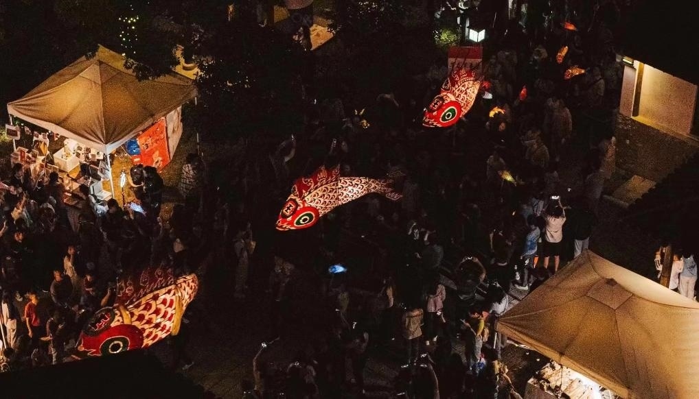 中秋國慶長假期間,汪滿田魚燈參加了蘇州石湖景區(qū)的手作藝術節(jié)。(張小君 攝)