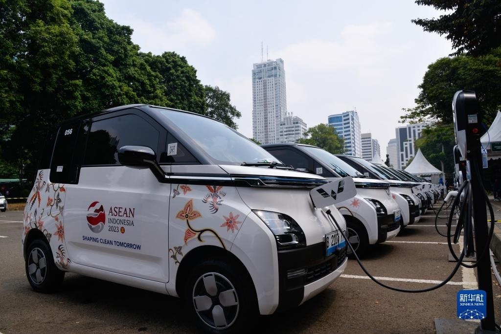 這是9月6日在印度尼西亞雅加達第43屆東盟峰會會場外拍攝的五菱新能源車Air ev。新華社記者 徐欽 攝
