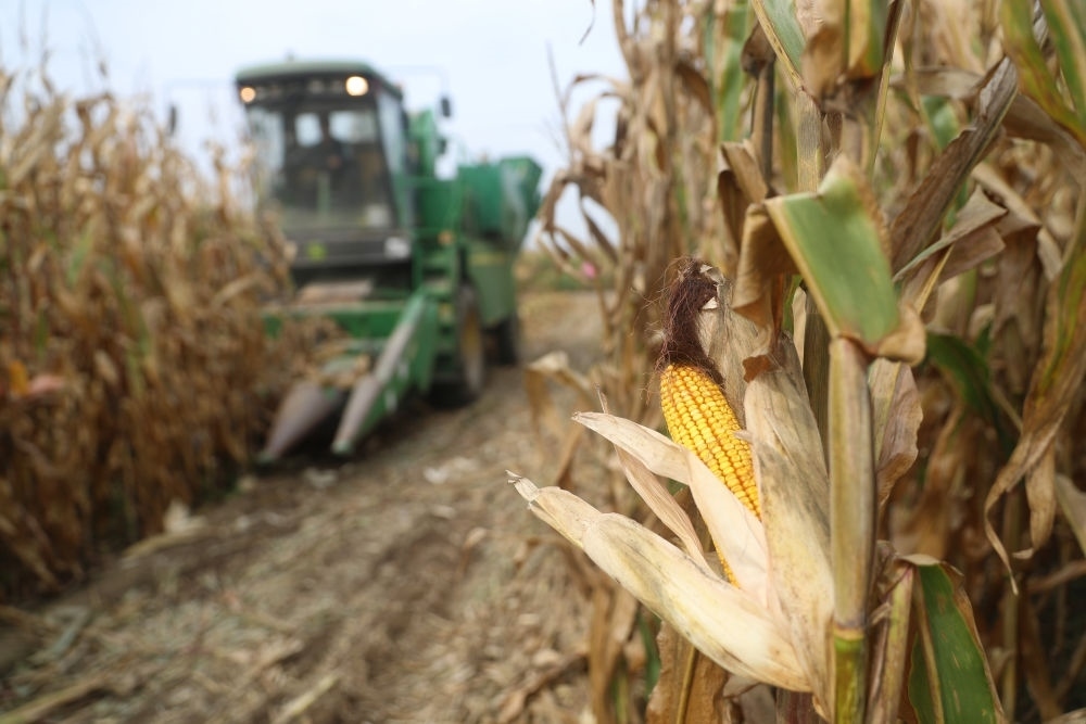 在遼寧省鐵嶺縣蔡牛鎮(zhèn)的玉米田里,農(nóng)民駕駛農(nóng)機(jī)收割玉米(2023年9月26日攝)。新華社記者 楊青 攝