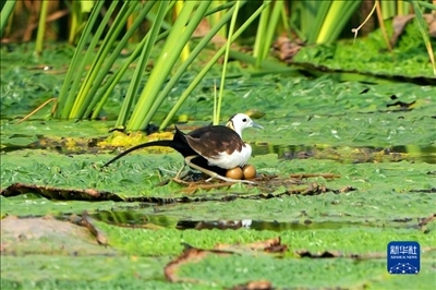 杭州灣濕地公園的水雉。新華網發(fā) 浙江杭州灣國家濕地公園供圖