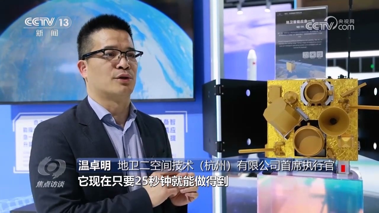 地衛(wèi)二空間技術(shù)(杭州)有限公司首席執(zhí)行官溫卓明:“這是一個聰明的衛(wèi)星,傳統(tǒng)的衛(wèi)星6個小時才能干完的事情,它只要25秒鐘就能做得到,而且原來可能要5000個工程師干的活,現(xiàn)在1個小時它就能做完。它是怎么能做到的?因為我們把人工智能放到了太空?!?/p>