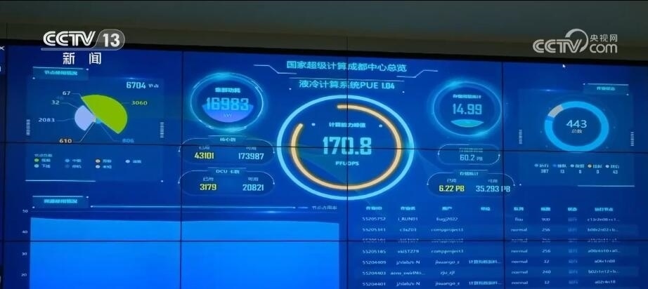 在國家超級計算成都中心,負責人王建波向記者介紹,從2021年投運以來,這里已經服務了45個城市的1200多家用戶,完成了5300多萬項課題任務,其中10萬核心量級的超大任務超過了100項。