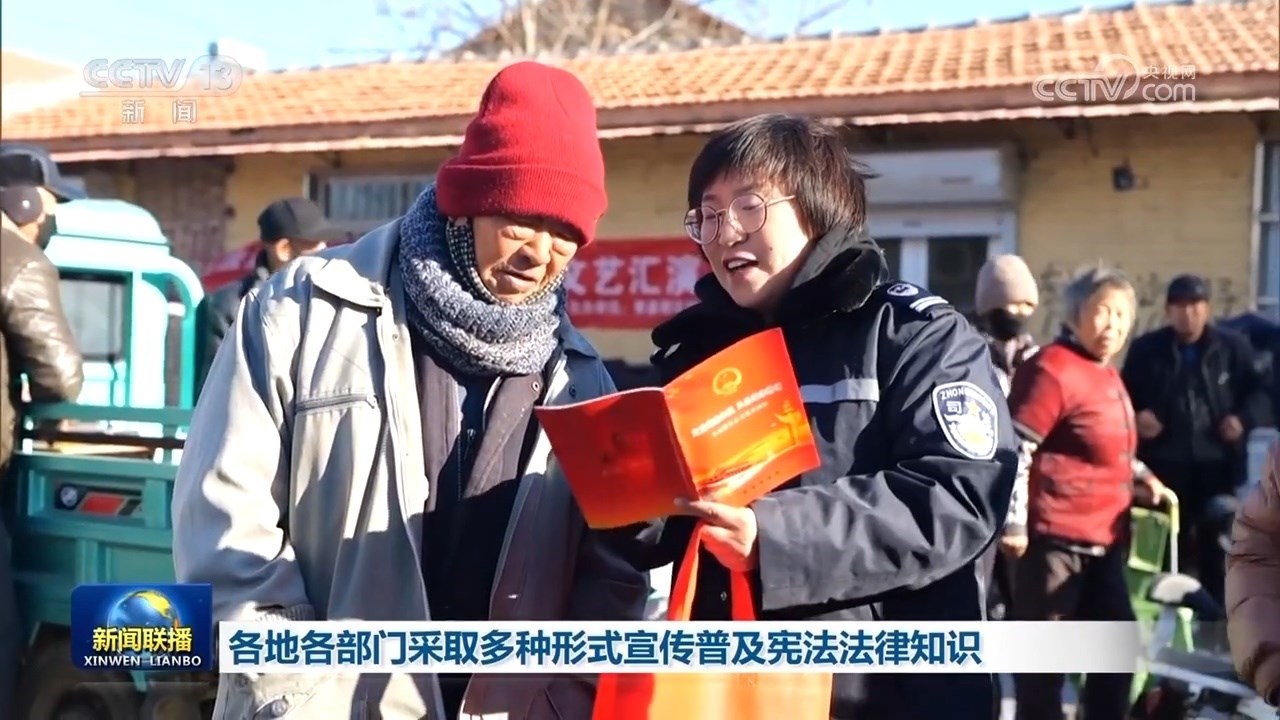 央視網(wǎng)消息(新聞聯(lián)播):今天(12月4日)是第十個(gè)國(guó)家憲法日,各地各部門通過(guò)多種形式宣傳普及憲法法律知識(shí),使憲法法律融入日常生活、走進(jìn)人民群眾,讓法治意識(shí)深入人心。
