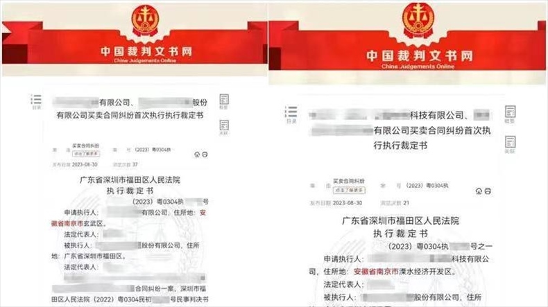 ·深圳市福田區(qū)人民法院的兩份執(zhí)行裁定書將江蘇南京錯寫成“安徽省南京市”,已從裁判文書網撤下。