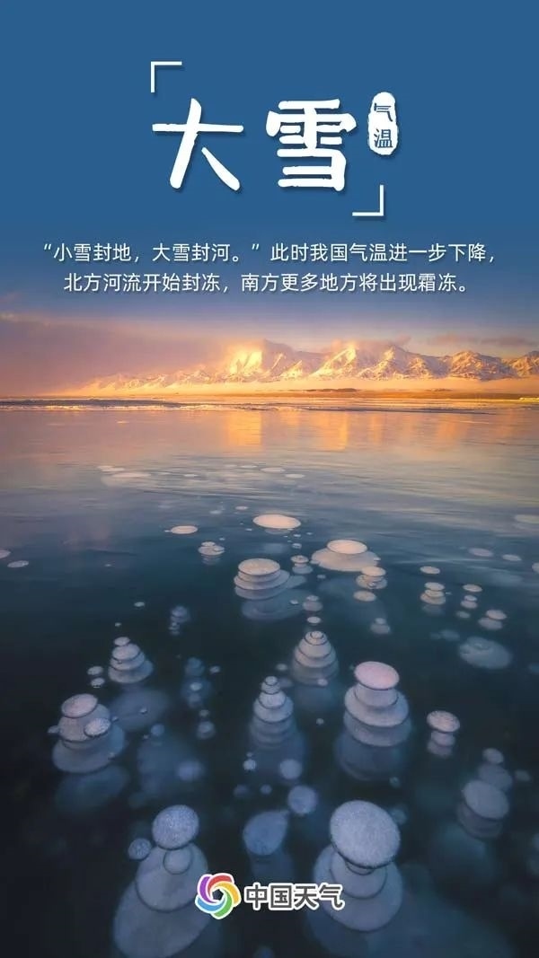 北方地區(qū)在大雪時(shí)節(jié)往往已進(jìn)入隆冬時(shí)節(jié),不少地方已經(jīng)是一派銀裝素裹的景象,河水也開(kāi)始封凍。南方也有更多地方最低氣溫跌破冰點(diǎn),開(kāi)始出現(xiàn)霜凍。