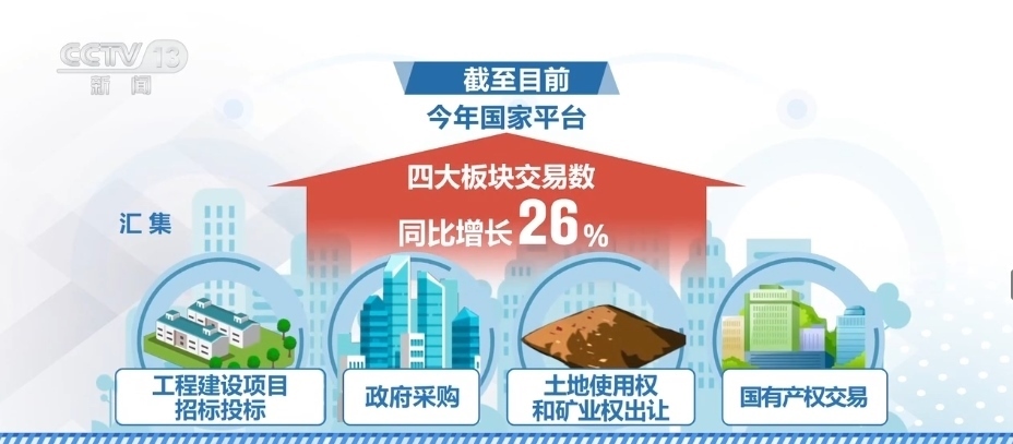 另外,全國公共資源交易平臺(tái)上的交易信息匯集發(fā)布量又創(chuàng)新高。截至目前,2023年國家平臺(tái)匯集工程建設(shè)項(xiàng)目招標(biāo)投標(biāo)、政府采購、土地使用權(quán)和礦業(yè)權(quán)出讓、國有產(chǎn)權(quán)交易這四大板塊交易數(shù)同比增長(zhǎng)26%。