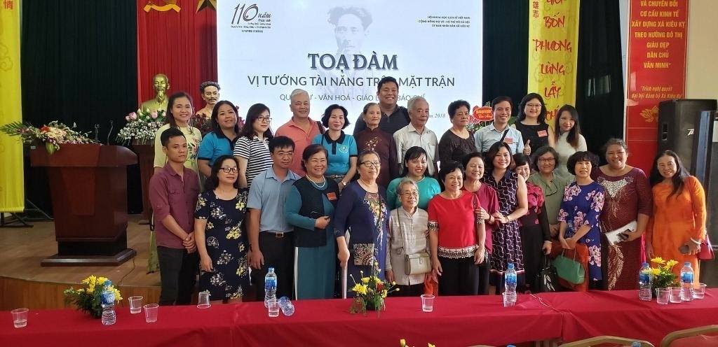 2018年9月30日,中越“兩國將軍”洪水誕辰110周年紀念活動在洪水故鄉(xiāng)河內(nèi)市嘉林縣驕騎鄉(xiāng)舉行。此為洪水將軍后代合影留念。(受訪者供圖)
