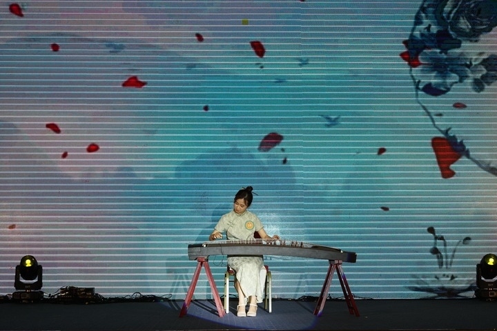 5月20日,第22屆“漢語橋”世界大學生中文比賽越南北部及中部賽區(qū)決賽中,參賽大學生表演古箏和太極拳。