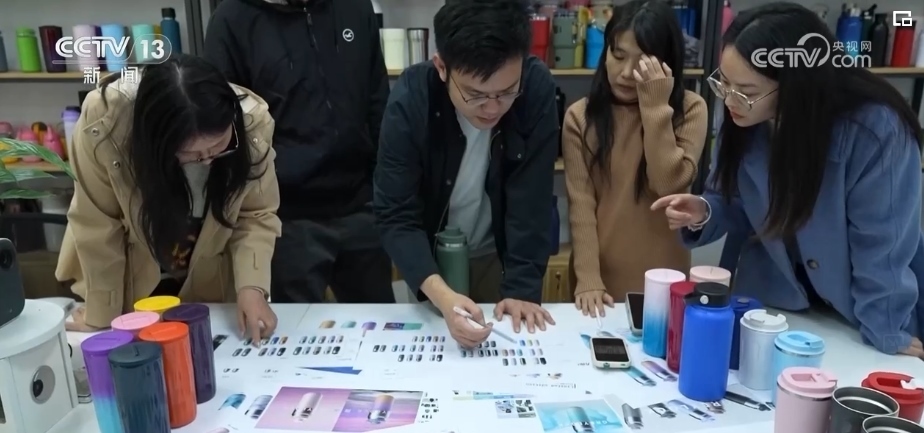 這兩天,王博文和設(shè)計(jì)團(tuán)隊(duì)正在為即將在海外上線的新款保溫杯挑選顏色,等顏色確定就可以開(kāi)始大批量的生產(chǎn)。