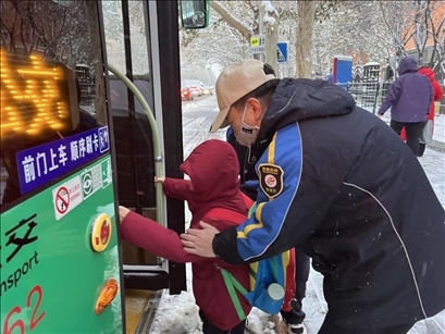 11日早高峰,作為保障北京中小學生出行的民生線路,北京通學公交車迅速啟動降雪天氣應急預案,提前發(fā)車,并加強車廂內保潔清掃。記者從北京公交集團獲悉,北京通學公交車40條在運線路全部照常發(fā)車,保障小乘客安全、舒適到校。