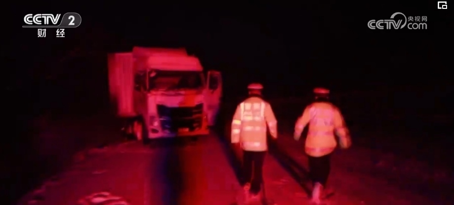 在交警的幫助下,大貨車(chē)順利爬坡并駛離高速公路。