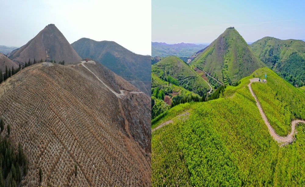 葛家溝國儲(chǔ)林基地(2020-2022)前后對(duì)比圖(資料照片)。(淅川縣委宣傳部供圖)
