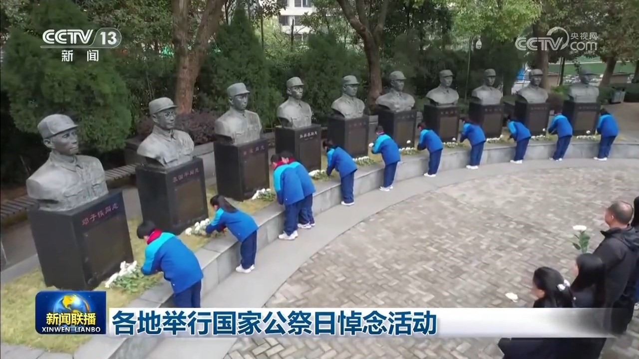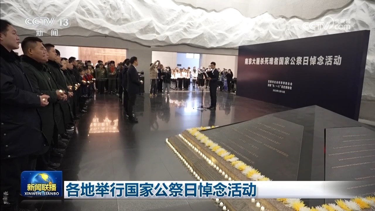 央視網(wǎng)消息(新聞聯(lián)播):今天(12月13日),各地舉行國(guó)家公祭日悼念活動(dòng),銘記歷史、珍愛(ài)和平,凝聚奮進(jìn)力量。