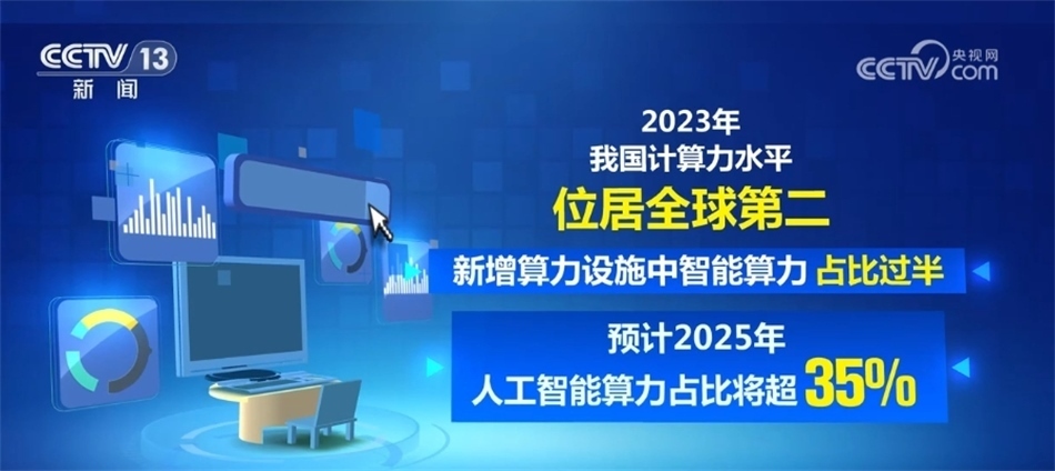 專家告訴記者,當前我國人工智能算力呈現(xiàn)出高速發(fā)展的態(tài)勢,正在成為數(shù)字經(jīng)濟發(fā)展的新動能。2023年我國計算力水平位居全球第二,新增算力設施中智能算力占比過半,預計2025年人工智能算力占比將超35%。智能產(chǎn)業(yè)鏈呈現(xiàn)產(chǎn)業(yè)鏈條長、生態(tài)集聚效應不斷增強的特點,有望帶動人工智能相關產(chǎn)業(yè)增長達到40倍左右,推動產(chǎn)業(yè)從數(shù)字化向智能化升級。