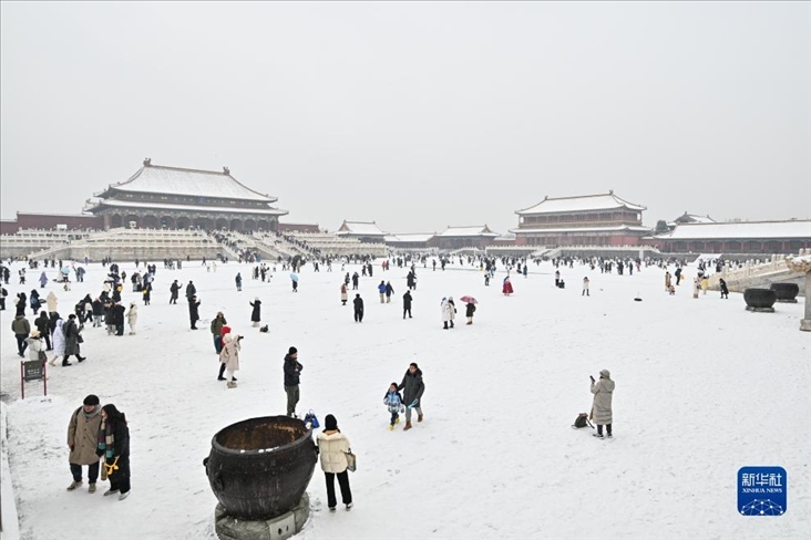 12月13日,北京再次迎來(lái)大雪天氣,不少游客前往故宮游玩賞雪。
