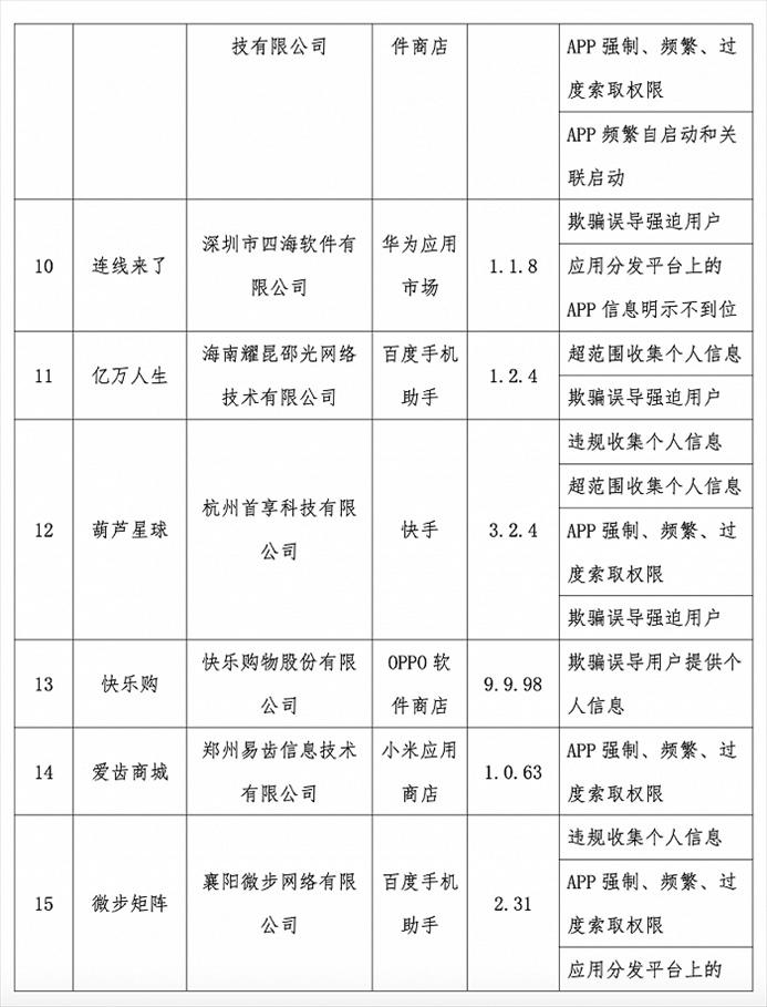 央視網(wǎng)消息:據(jù)工信部網(wǎng)站消息,近期,工信部組織第三方檢測機(jī)構(gòu)對群眾關(guān)注的實用工具、本地生活、網(wǎng)絡(luò)游戲等移動互聯(lián)網(wǎng)應(yīng)用程序(APP)及第三方軟件開發(fā)工具包(SDK)進(jìn)行檢查。發(fā)現(xiàn)24款A(yù)PP、SDK存在侵害用戶權(quán)益行為,現(xiàn)予以通報。