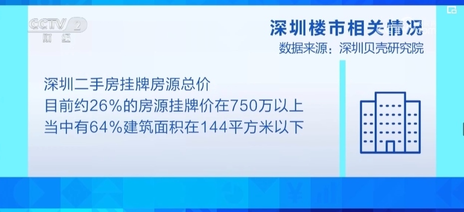 深圳貝殼研究院的數(shù)據(jù)顯示,從深圳二手房掛牌房源的總價(jià)來看,目前約26%的房源掛牌價(jià)在750萬以上,這部分房源當(dāng)中有64%是建筑面積在144平方米以下的,換算之后約17%的掛牌房源是這次普通住房標(biāo)準(zhǔn)調(diào)整的直接受益者。
