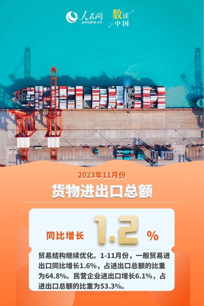 國家統(tǒng)計(jì)局15日發(fā)布數(shù)據(jù)顯示,11月份,我國工業(yè)、服務(wù)業(yè)、消費(fèi)、出口等主要生產(chǎn)需求指標(biāo)穩(wěn)中有升,就業(yè)物價(jià)總體穩(wěn)定,創(chuàng)新動(dòng)能繼續(xù)成長,高質(zhì)量發(fā)展扎實(shí)推進(jìn),國民經(jīng)濟(jì)總體延續(xù)回升向好的態(tài)勢。
