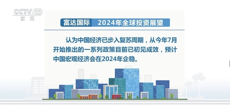 深耕中國(guó)多年的富達(dá)國(guó)際在月初發(fā)布的2024年全球投資展望認(rèn)為中國(guó)經(jīng)濟(jì)已步入復(fù)蘇周期,從2023年7月開(kāi)始推出的一系列政策目前已初見(jiàn)成效,預(yù)計(jì)中國(guó)宏觀經(jīng)濟(jì)會(huì)在2024年企穩(wěn)。