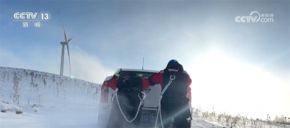 在河北張家口沽源縣,最高氣溫只有零下17攝氏度。華電冀北新能源馳盛風(fēng)電場(chǎng)的運(yùn)維員工,冒著寒風(fēng)檢查線路覆冰情況,發(fā)現(xiàn)并消除線路覆冰101公里。